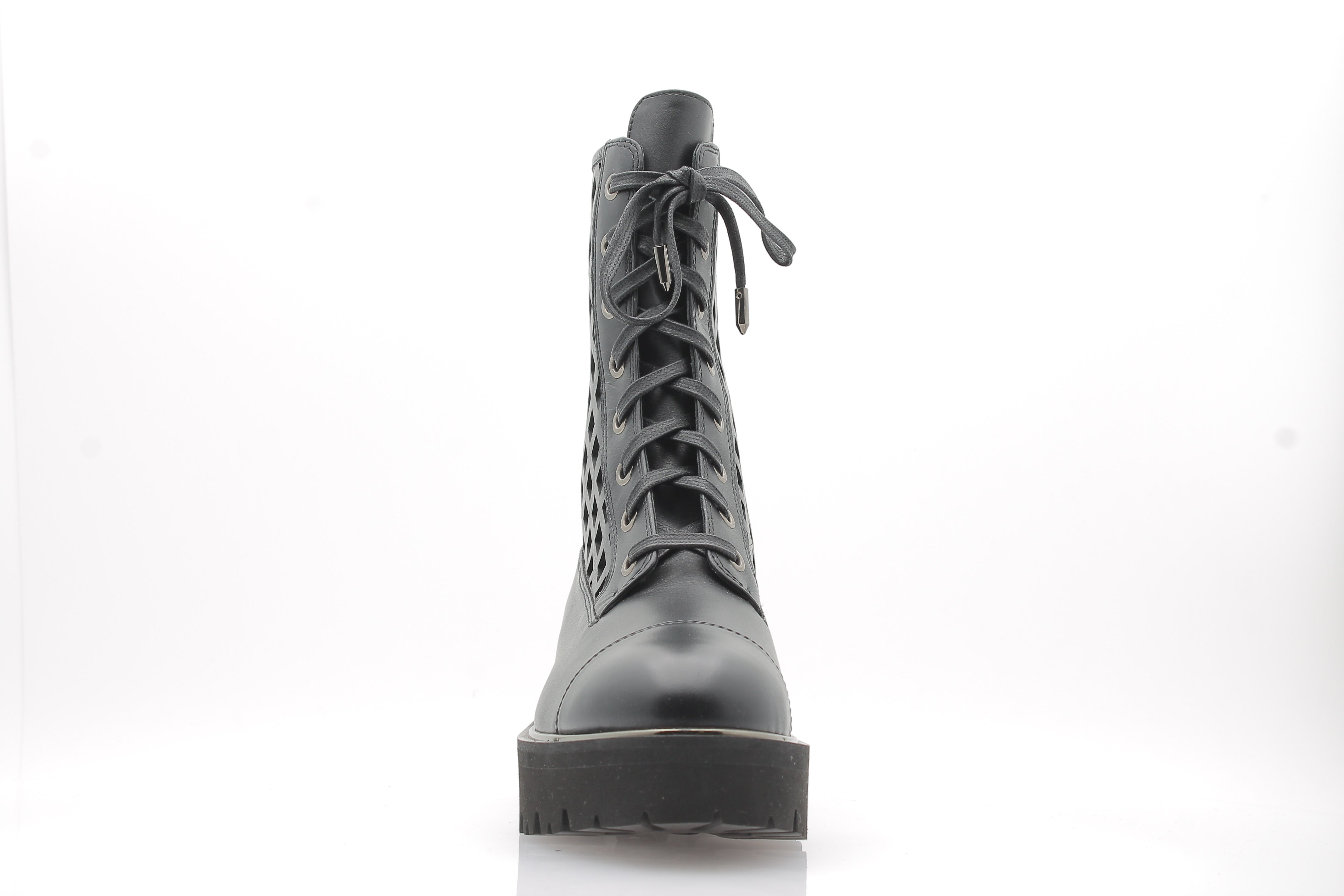 Bottine en cuir de veau brillant | Découpes design | Détails métalliques lumineux | Fermeture zip arrière | Semelle crantée en caoutchouc | Insole en cuir rembourrée | Logo signature Aquazzura