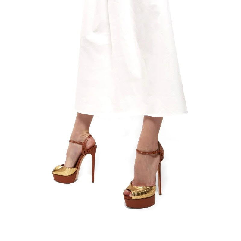 CASADEI® - Flora Cristal Sandales Plateformes en cuir - Caramel & Doré
